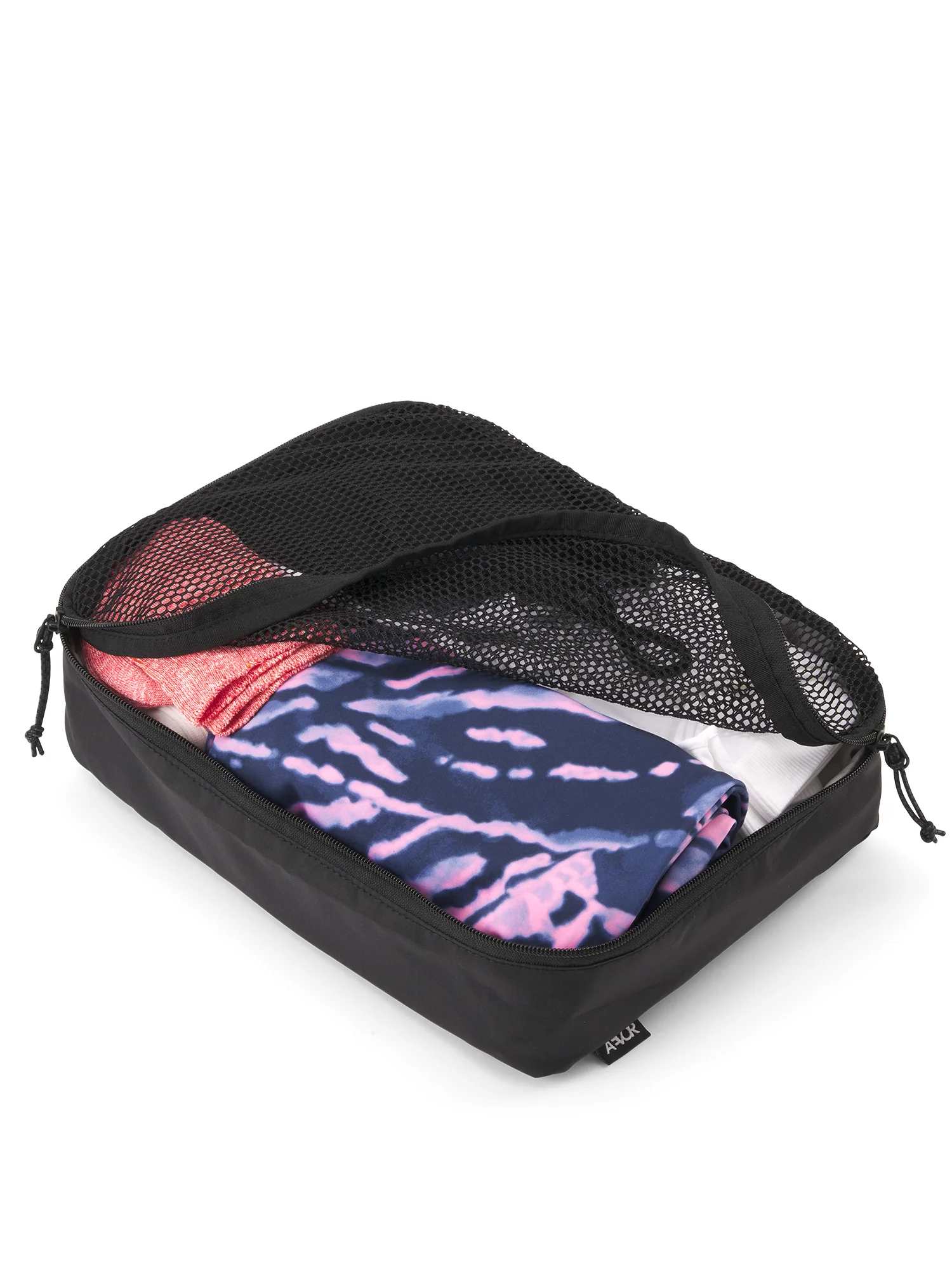 Der Packing Cube Small. Für alles, was zwischen Micro und Medium fällt. Socken, T-Shirts, das tägliche Zeug – sortiert, sichtbar, griffbereit. Mesh-Stoff, Rundum-Reißverschluss, perfekt kombinierbar mit den anderen Cube-Größen.